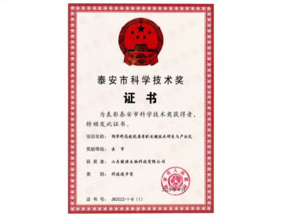 公司產品青貯寶、健力源、益康泰、源立凈等連續兩年被評為山東畜牧業博覽會優質產品金獎并獲得了國家...