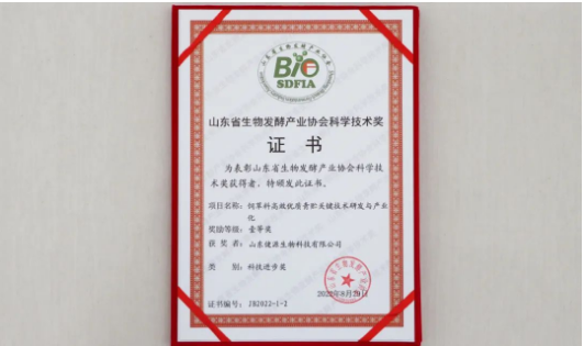 山東省生物發酵產業協會科學技術獎科技進步獎一等獎
