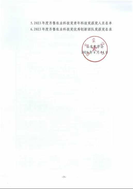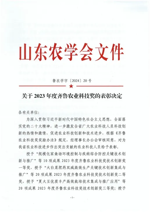 齊魯農業科技獎是山東農學會設立的面向全省農業行業的綜合性科學技術獎,主要獎勵為全省農業科學技術進步和創新作出突出貢獻的集體和個人,對于調動廣大農業科技工作者的積極性和創造性,促進我省農業科技創新,不斷提升產業發展水平起到了積極的推動作用。