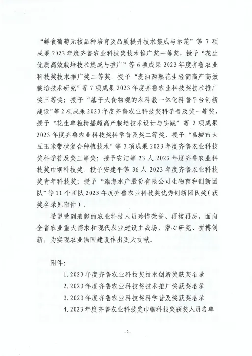 健源生物榮獲2023年度齊魯農業科技獎技術創新獎三等獎