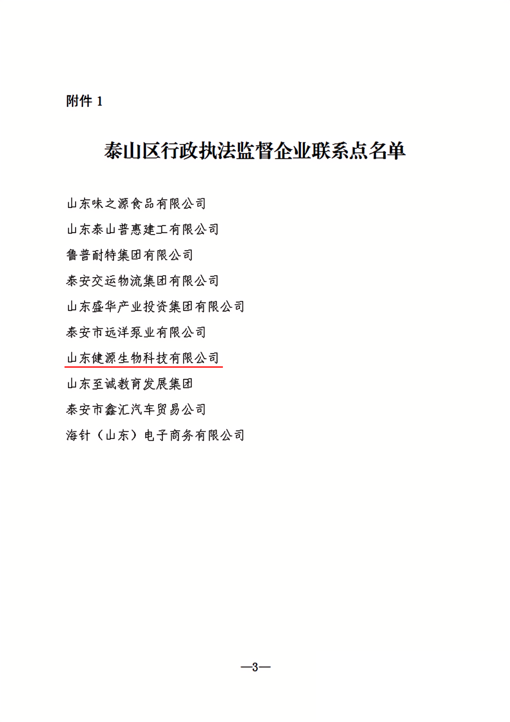 健源生物被設(shè)為泰山區(qū)行政執(zhí)法監(jiān)督企業(yè)聯(lián)系點